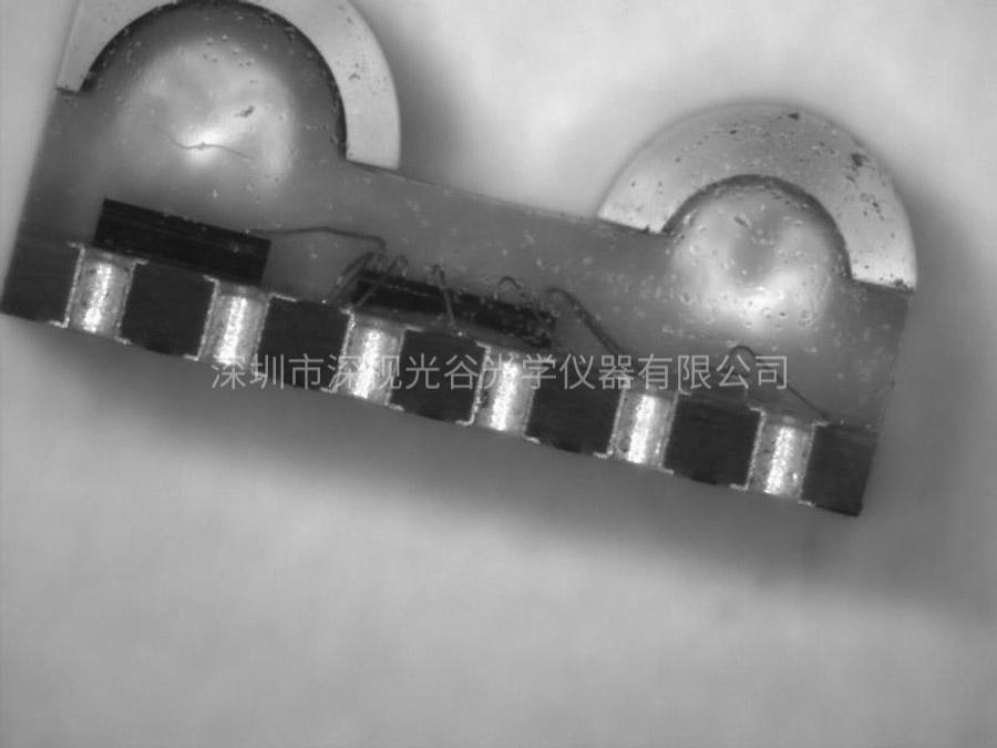 LED燈引腳瑕疵的檢測,采用是高端研究級(jí)偏光金相顯微鏡及最新軟...