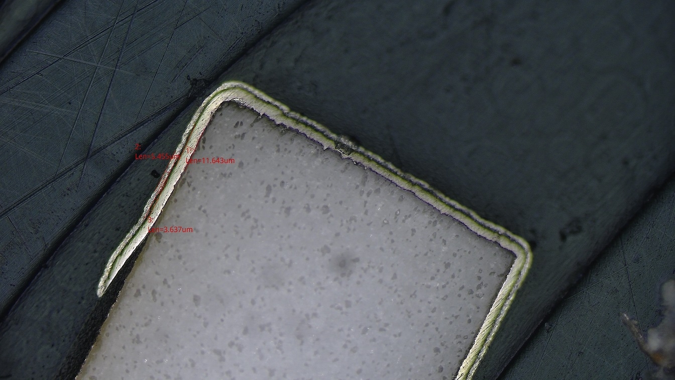 LED燈引腳瑕疵的檢測,采用是高端研究級偏光金相顯微鏡及最新軟...