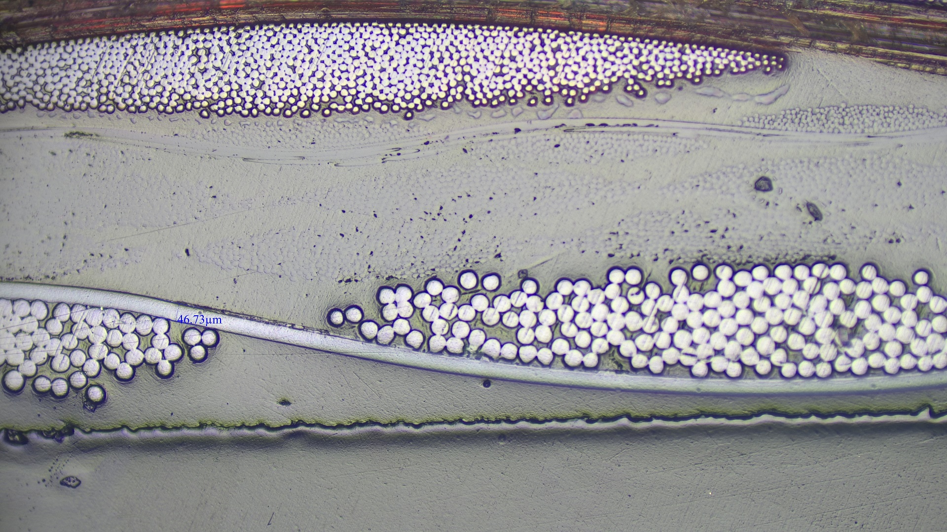 產品材料經過切片并進行磨拋、拋光使得產品表面平整后,再用研究級金相顯微鏡進行放大觀測并拍照存儲及測量的操作等等